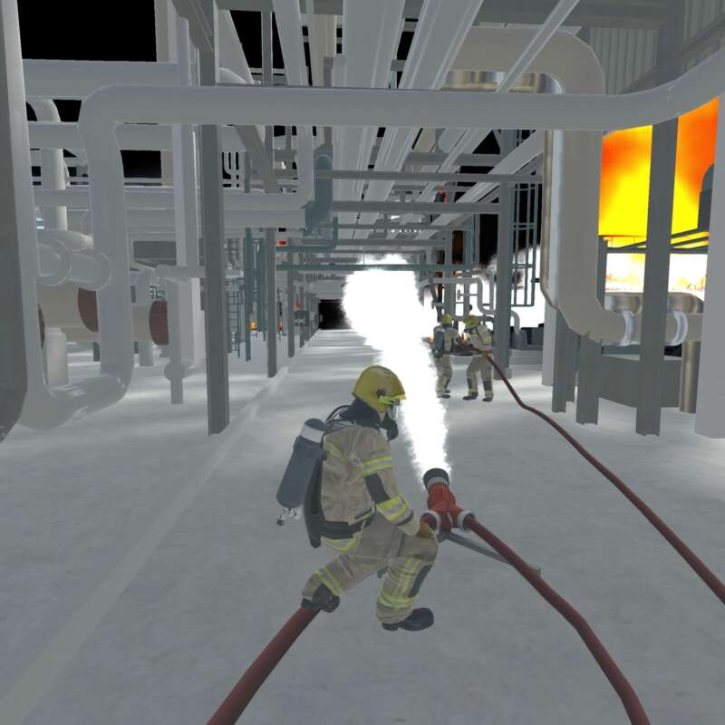XVR is not used to train specific skills, such as handling the powder extinguisher or particular practical operations; it is used to prepare for taking the correct actions. People take action in the training and see the results; that is the power of XVR. We have many VR environments for refineries and oil and gas storage areas. We can simulate all kinds of accidents & incidents in these environments and also in other more general environments.